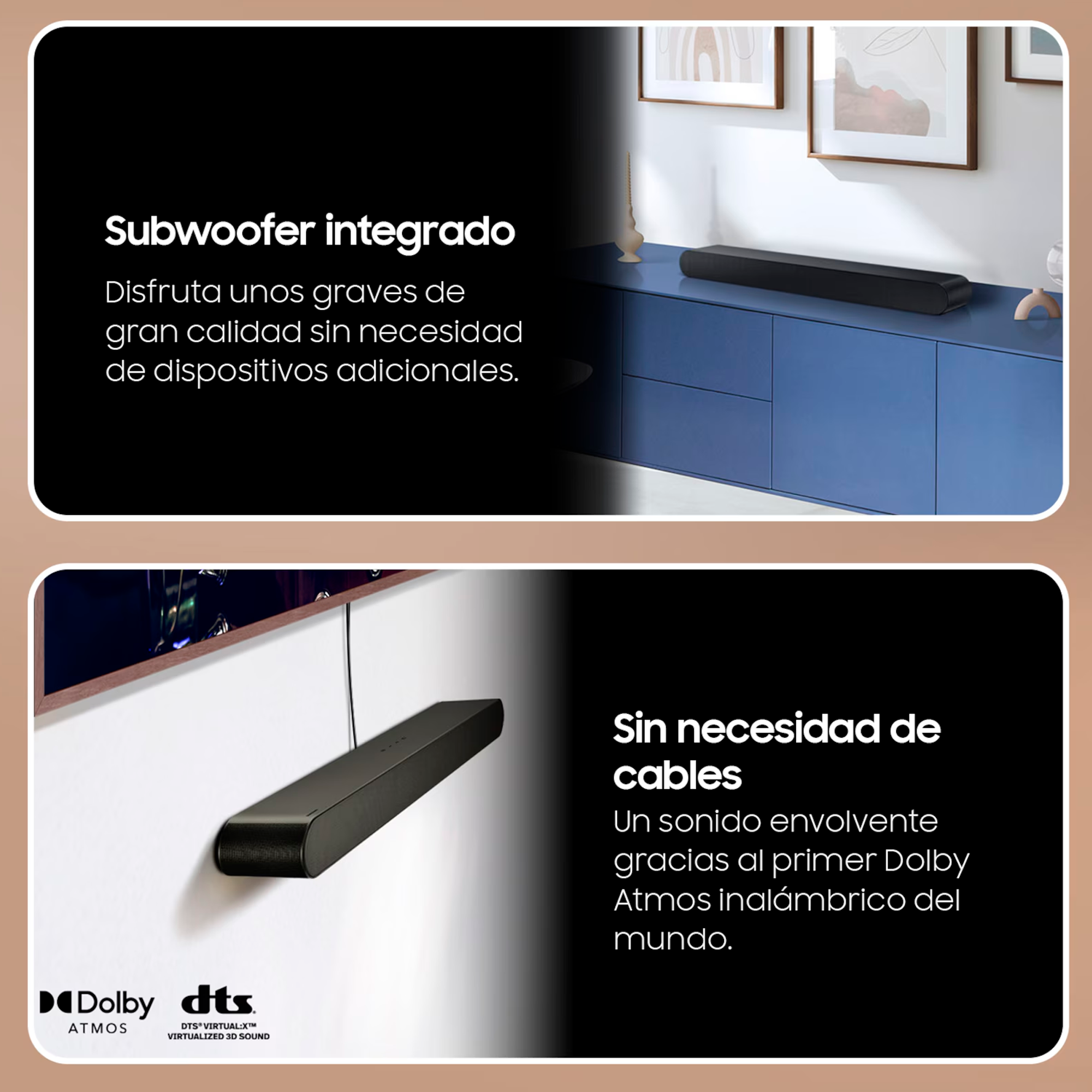 | Funciones especiales | SpaceFit Sound Pro, Adaptive Sound, Game Mode Pro, Night Mode, Active Voice Amplifier (AVA), Q-Symphony |