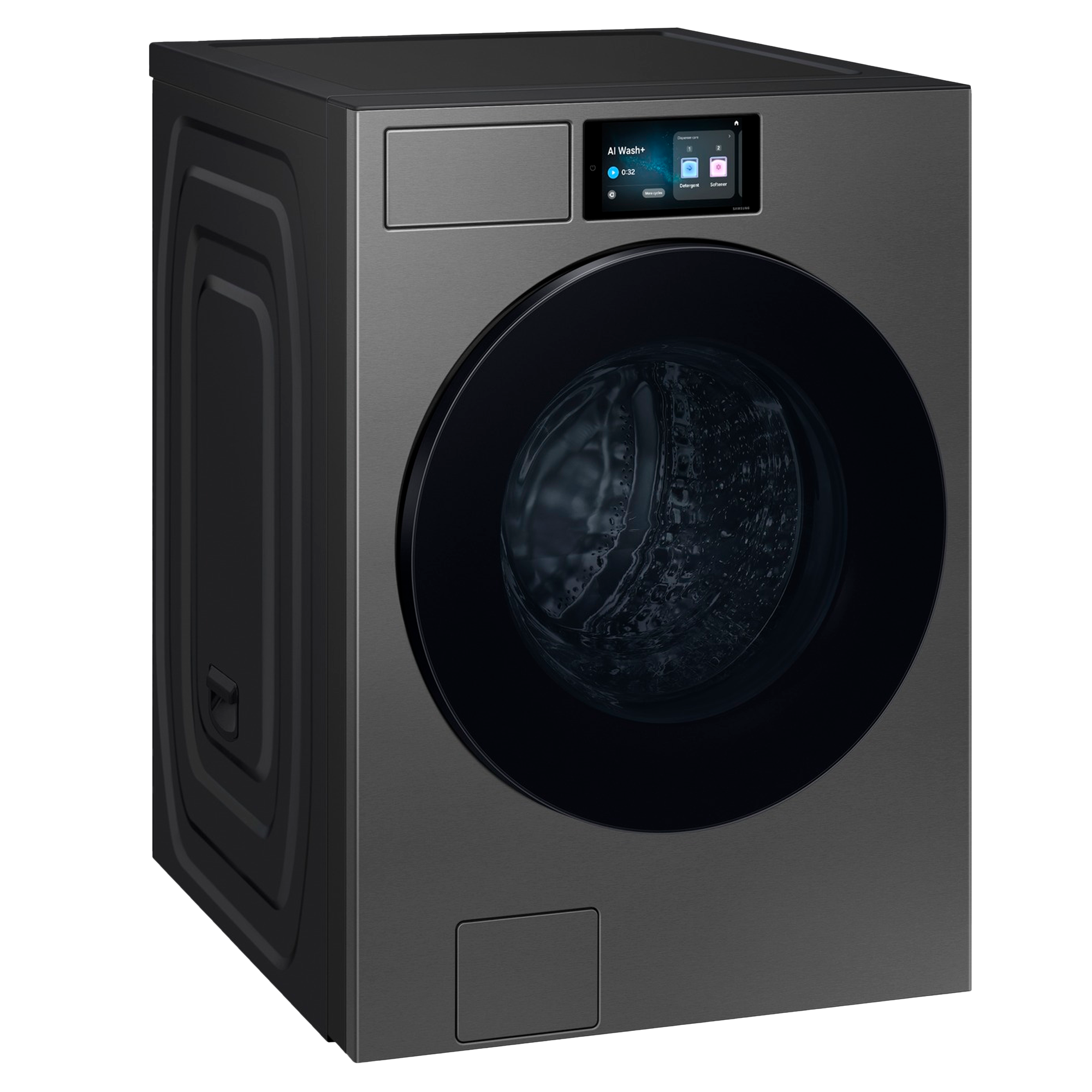 Lavadora de carga frontal de gran capacidad (25 kg) con tecnología AI Wash+ y EcoBubble, panel digital táctil de 7 “, conectividad Wi-Fi y múltiples programas inteligentes para un lavado eficiente, delicado con las prendas y optimizado según el tipo de carga.
